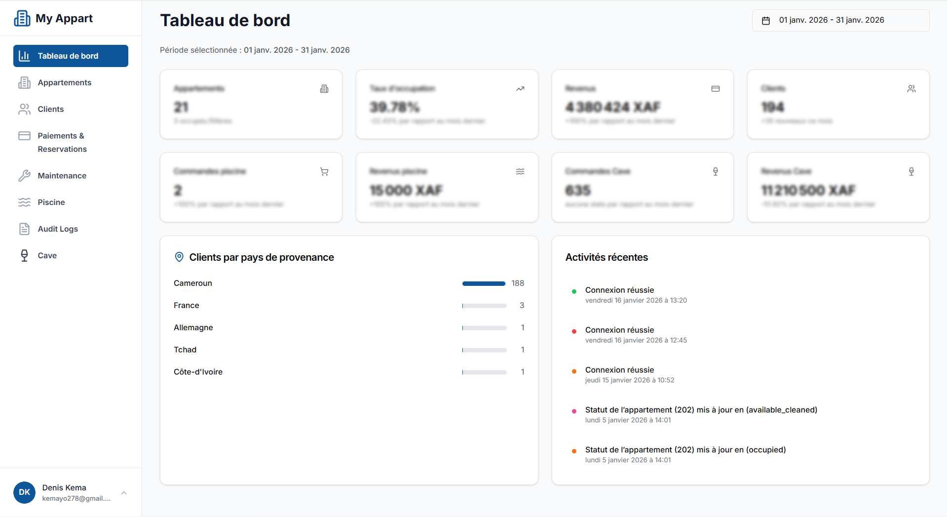- Gestion Financière : Suivez les loyers, charges, dépenses et générez des rapports financiers détaillés.