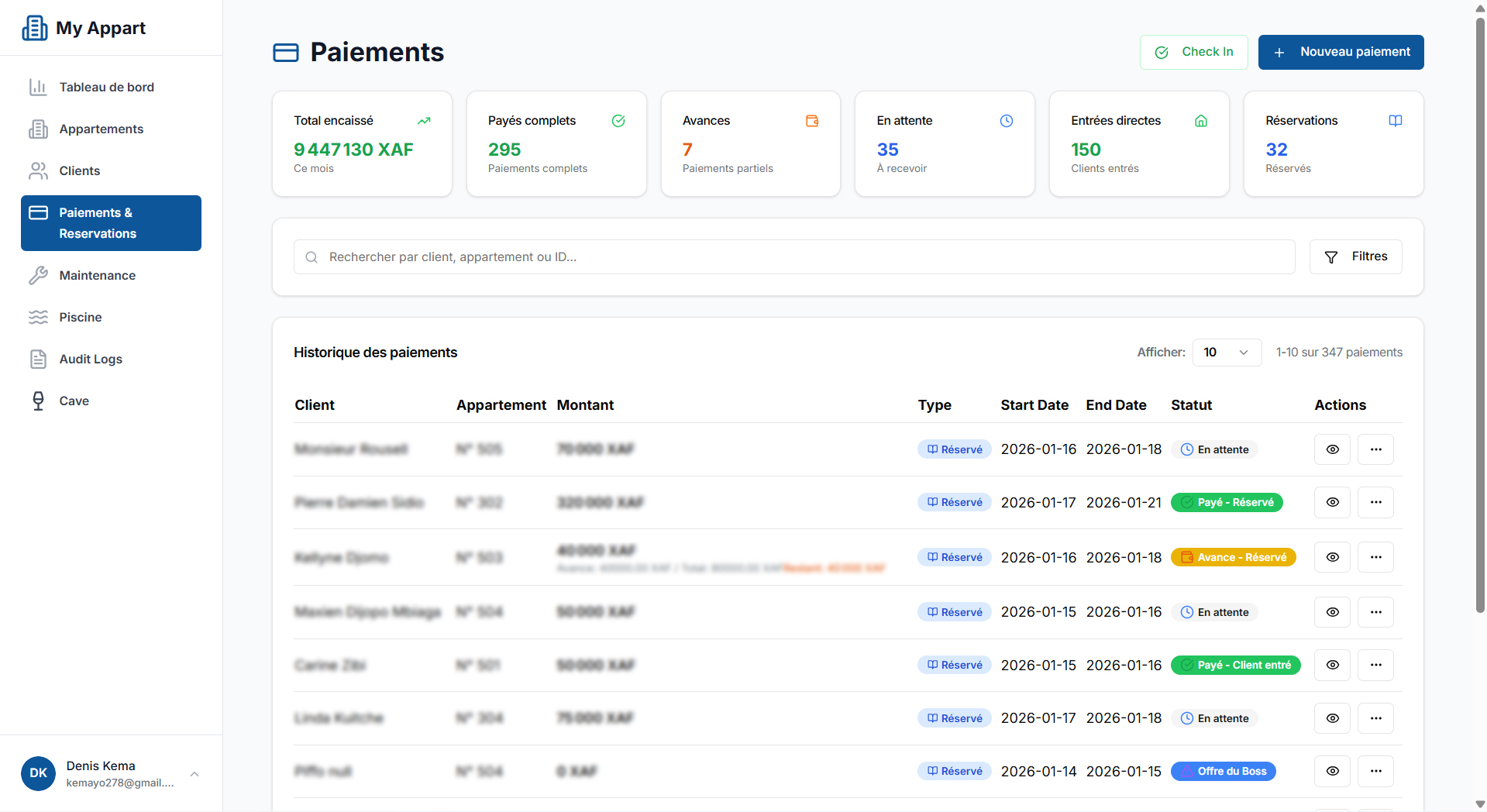 - Suivi des locataires